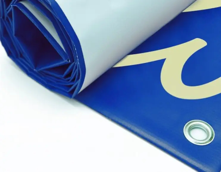 Bannière publicitaire personnalisée en pvc simple face de 560 gr / m2 enduit de polyester enduit produit pour un usage interne et externe avec possibilité de renfort par soudure et sonnerie sur tout le périmètre.